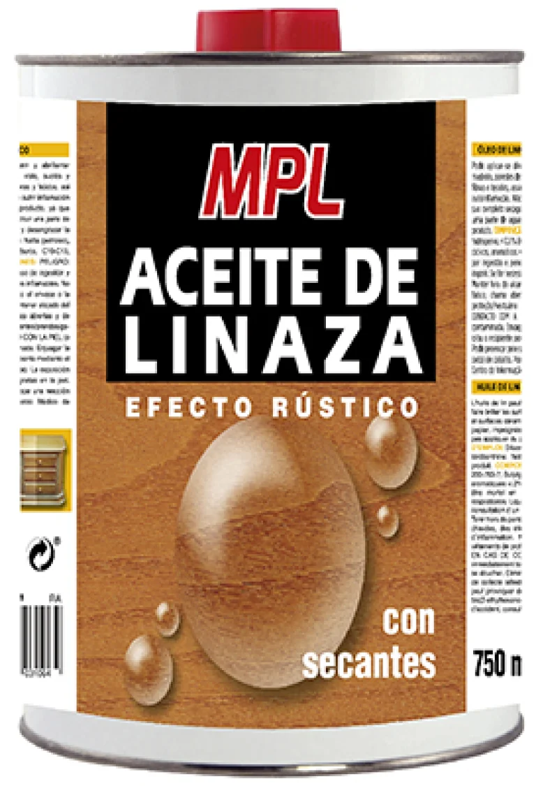 Aceite de Linaza con secantes para nutrir, proteger y abrillantar superficies de madera: vigas, pérgolas, mobiliario de exterior, ventanas, puertas... Además, de limpiador de superficies porosas como paredes de ladrillos cara vista o suelos de barro cocido.