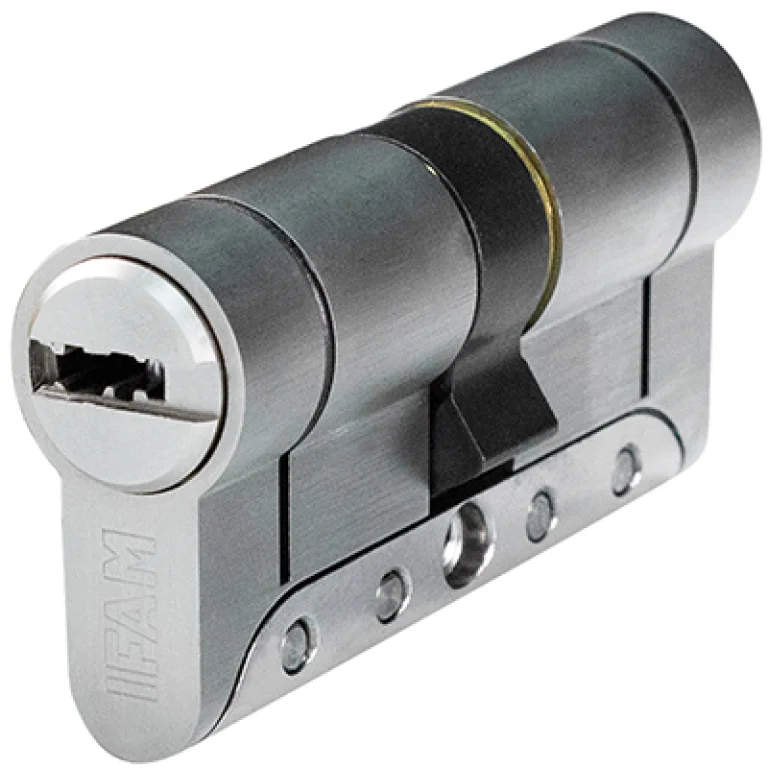 - Doble protección antirrotura con puente reforzado antirrotura y sistema anti-snap. Tras un intento de robo por fractura, el cilindro se parte por la zona de rotura programada (línea anti-snap). Así queda poco accesible para su extracción y, sin embargo, operativo para el usuario. En caso que se vuelva a intentar el robo, el puente reforzado hace prácticamente imposible su extracción.