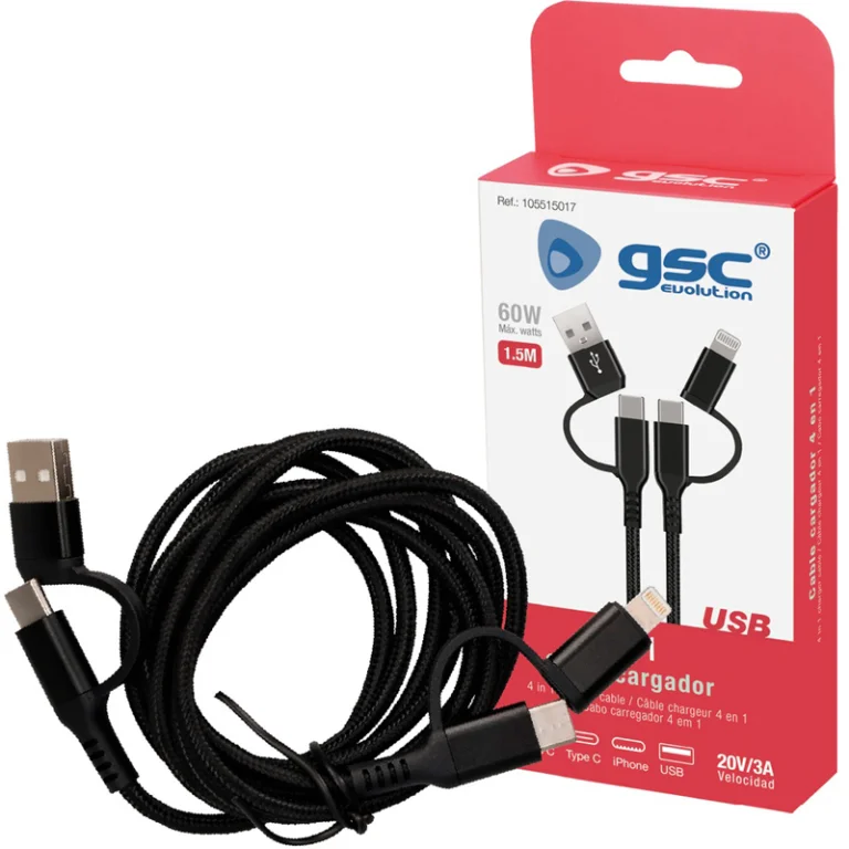 CABLE CARGADOR TRENZADO 4 en 1 1.5mt 2 USB C MICRO USB, USB A Y USB 105515017 GSC