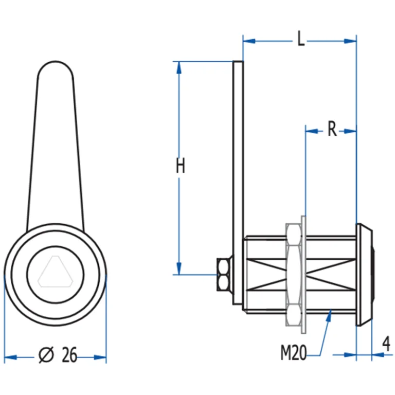CERRADURA CONTADOR CUARTO VUELTA TRIANGULO 8mm M20 193 C50 AGA