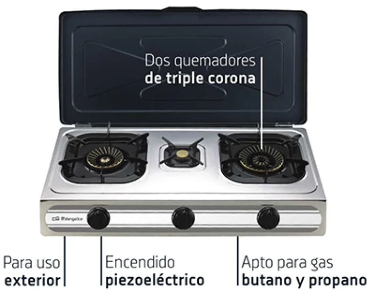 COCINA BUTANO INOX CON PIEZO 3 FUEGOS FO-3500 ORBEGOZO