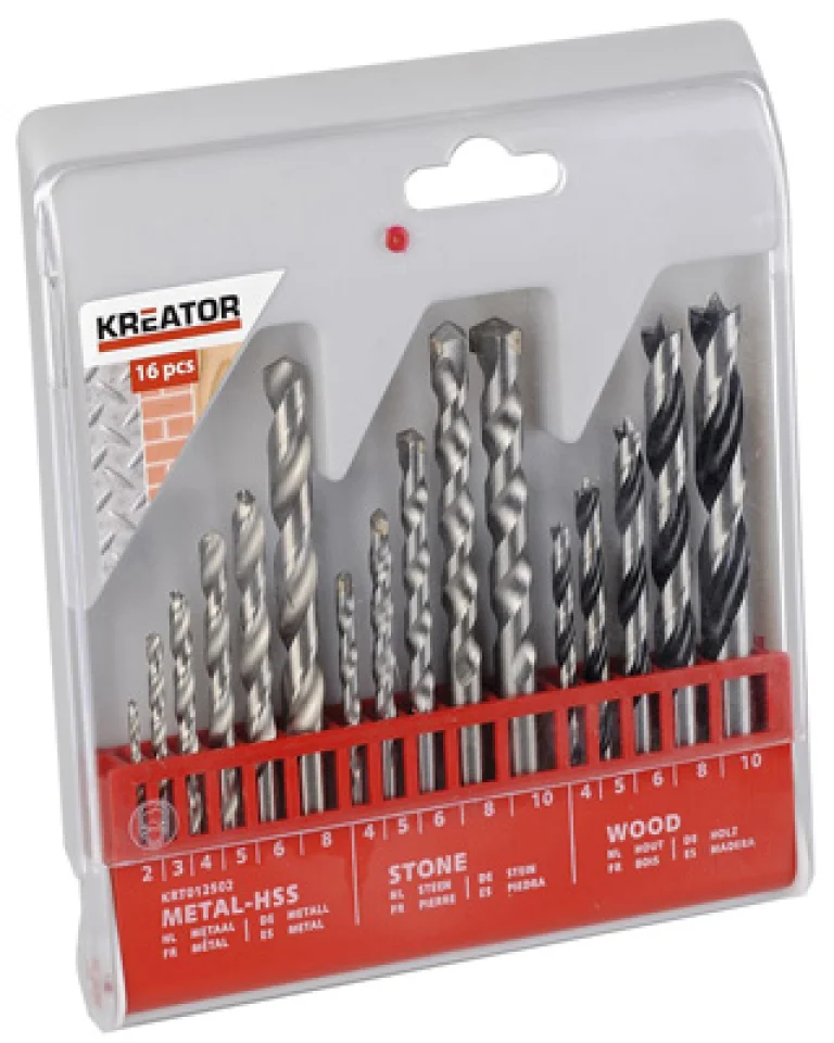 JUEGO 16 BROCAS HSS-WIDIA-MADERA 2-10mm KRT012502 KREATOR