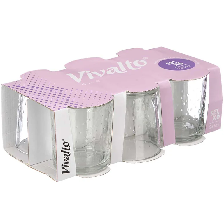 JUEGO 6 VASOS AGUA PUNTOS 260ml 79064 VIVALTO