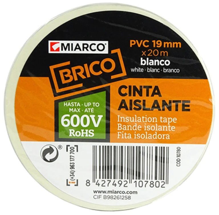 PAQ. 10 ROLLOS CINTA AISLANTE BLANCA 19mm x20mt MIARCO