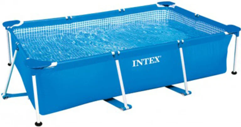 Piscina Metal Frame rectangular INTEX, medidas 260x160x65 cm y capacidad de 2.828 litros, con conexiones de Ø 32 mm para depuradoras con tubos del mismo diámetro