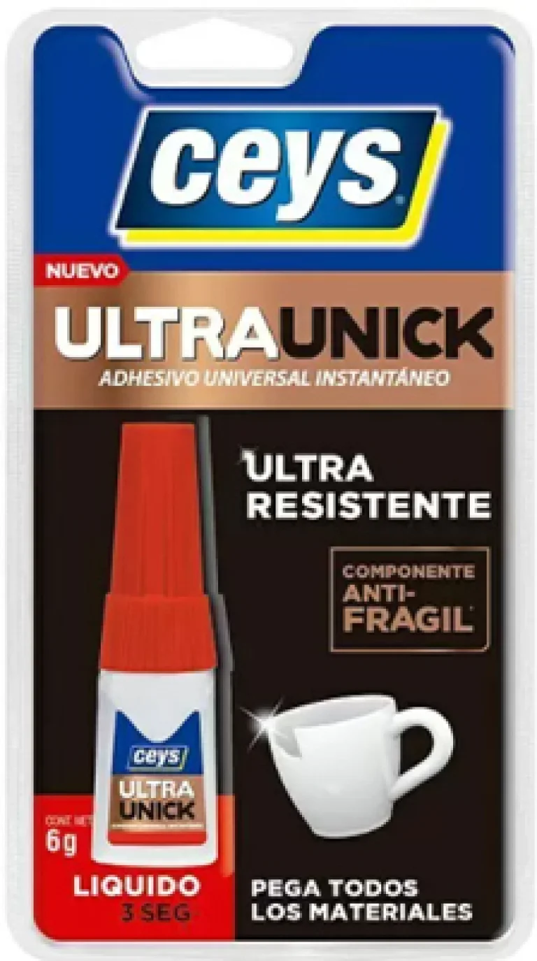 - Adhesivo instantaneo, transparente, de gran resistencia.
